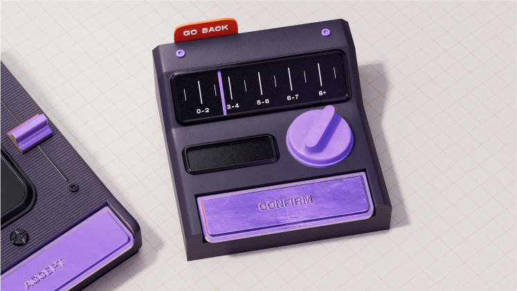 With both aesthetics and utility of the device to consider the design of the Contra Calculator device was a nuanced process. The art direction was inspired by retro tech, we wanted the device to have a tactile and nostalgic feel to it. Buttons that depress and switches and levers that click and clack – a break from the soulless touch screens we use today. This in itself created a number of challenges, the biggest of which being the device needing to fit and function across all screen sizes whilst still maintaining an aesthetically pleasing form overall. We went through a huge amount of iterations and prototypes until we were happy with the final form, made from a number of interlocking parts which helped create that interesting flow through the site.